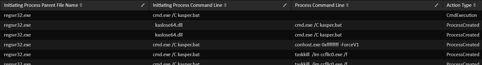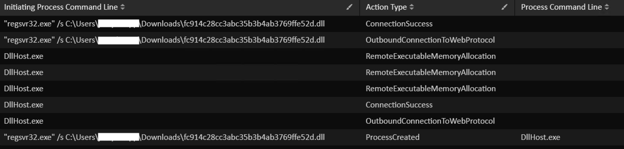 Correlating this with Process Execution logs from MDE, shows that the task was executing the IcedID downloaded DLL: