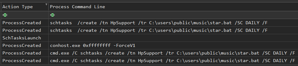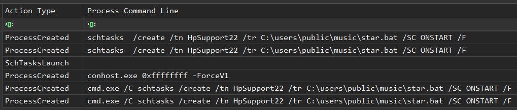 While analyzing this intrusion, we observed further persistence via scheduled tasks associated with post-exploitation activities.