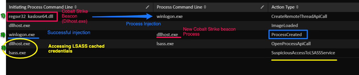 The threat actors connected to the machine to run the first discovery commands using Cobalt Strike Beacon. The threat actors then downloaded an additional Cobalt Strike Beacon kaslose.dll via curl and executed it via regsvr32:
