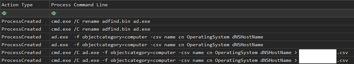 Upon initial execution, Cobalt Strike ran some discovery commands before injecting into the LSASS process to steal cached credentials. The threat actors did not waste any time, and within four minutes, they gained administrative credentials then began searching for the domain controllers. Once the domain controllers were identified, they used Cobalt Strike’s “jump psexec_psh” capability, which creates a Windows service that executes a Beacon executable to move laterally. Having gained access to the domain controllers, the attackers downloaded and executed AdFind to collect further information about the domain.