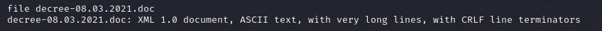 Reviewing the file we can observe that the filetype while labeled as a .doc file appears as XML when reviewing the file attributes.
