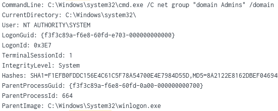 Using the RunDLL32 and Winlogon process, we observed many typical host and network discovery commands utilizing living off the land techniques such as net, nltest, tasklist and time. Examples included: