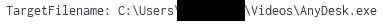 We observed the AnyDesk application created under the folder c:\users\<REDACTED>\Videos’, an unusual location and suspicious location for process activity – this is a good detection opportunity where portable executables appear on non-standard file system locations.
